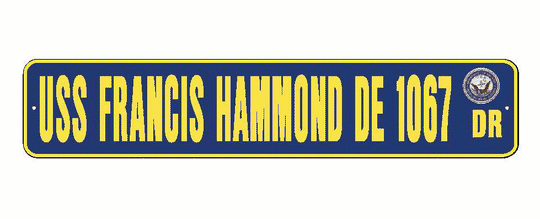 Vendor: American Military Graphics USS FRANCIS HAMMOND DE 1067 Aluminum Street Sign Navy Blue / Yellow 6" x 30" Military USN SS002 Size: 6" X 30" 2 pre-drilled holes for hanging. Material: .080 Aluminum Color: Navy Blue / Yellow with Navy SealSale price $27.99Regular price $29.99