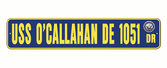 Vendor: American Military Graphics USS O'CALLAHAN DE 1051 Aluminum Street Sign Navy Blue / Yellow 6" x 30" Military USN SS002 Size: 6" X 30" 2 pre-drilled holes for hanging. Material: .080 Aluminum Color: Navy Blue / Yellow with Navy SealSale price $27.99Regular price $29.99