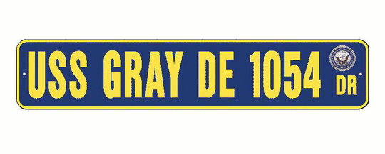 Vendor: American Military Graphics USS GRAY DE 1054 Aluminum Street Sign Navy Blue / Yellow 6" x 30" Military USN SS002 Size: 6" X 30" 2 pre-drilled holes for hanging. Material: .080 Aluminum Color: Navy Blue / Yellow with Navy SealSale price $27.99Regular price $29.99