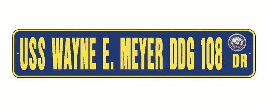 Vendor: American Military Graphics USS WAYNE E MEYER DDG 108 Aluminum Street Sign Navy Blue / Yellow 6" x 30" Military USN SS002 Size: 6" X 30" 2 pre-drilled holes for hanging. Material: .080 Aluminum Color: Navy Blue / Yellow with Navy SealSale price $27.99Regular price $29.99
