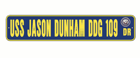 Vendor: American Military Graphics USS JASON DUNHAM DDG 109 Aluminum Street Sign Navy Blue / Yellow 6" x 30" Military USN SS002 Size: 6" X 30" 2 pre-drilled holes for hanging. Material: .080 Aluminum Color: Navy Blue / Yellow with Navy SealSale price $27.99Regular price $29.99