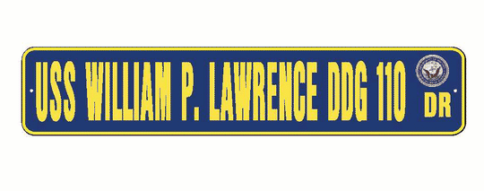 Vendor: American Military Graphics USS WILLIAM P LAWRENCE DDG 110 Aluminum Street Sign Navy Blue / Yellow 6" x 30" Military USN SS002 Size: 6" X 30" 2 pre-drilled holes for hanging. Material: .080 Aluminum Color: Navy Blue / Yellow with Navy SealSale price $27.99Regular price $29.99