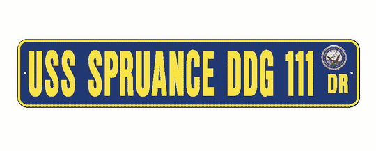 Vendor: American Military Graphics USS SPRUANCE DDG 111 Aluminum Street Sign Navy Blue / Yellow 6" x 30" Military USN SS002 Size: 6" X 30" 2 pre-drilled holes for hanging. Material: .080 Aluminum Color: Navy Blue / Yellow with Navy SealSale price $27.99Regular price $29.99