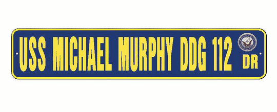 Vendor: American Military Graphics USS MICHAEL MURPHY DDG 112 Aluminum Street Sign Navy Blue / Yellow 6" x 30" Military USN SS002 Size: 6" X 30" 2 pre-drilled holes for hanging. Material: .080 Aluminum Color: Navy Blue / Yellow with Navy SealSale price $27.99Regular price $29.99