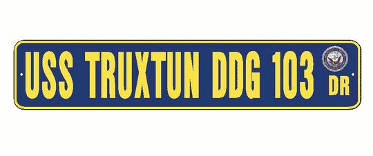 Vendor: American Military Graphics USS TRUXTUN DDG 103 Aluminum Street Sign Navy Blue / Yellow 6" x 30" Military USN SS002 Size: 6" X 30" 2 pre-drilled holes for hanging. Material: .080 Aluminum Color: Navy Blue / Yellow with Navy SealSale price $27.99Regular price $29.99