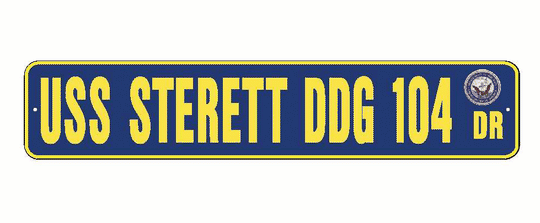 Vendor: American Military Graphics USS STERETT DDG 104 Aluminum Street Sign Navy Blue / Yellow 6" x 30" Military USN SS002 Size: 6" X 30" 2 pre-drilled holes for hanging. Material: .080 Aluminum Color: Navy Blue / Yellow with Navy SealSale price $27.99Regular price $29.99