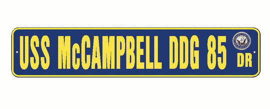 USS McCAMPBELL DDG 85 Aluminum Street Sign Navy Blue / Yellow 6" x 30" Military USN SS002