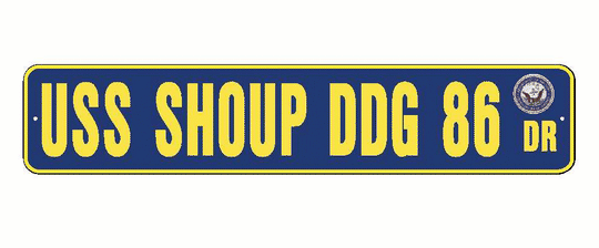 USS SHOUP DDG 86 Aluminum Street Sign Navy Blue / Yellow 6" x 30" Military USN SS002