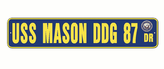 USS MASON DDG 87 Aluminum Street Sign Navy Blue / Yellow 6" x 30" Military USN SS002