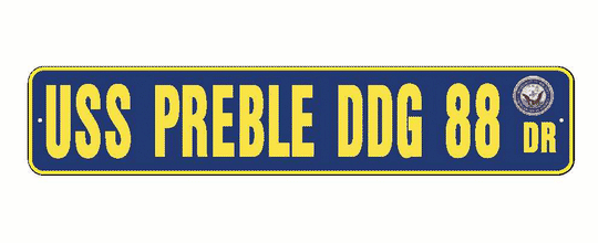 USS PREBLE DDG 88 Aluminum Street Sign Navy Blue / Yellow 6" x 30" Military USN SS002