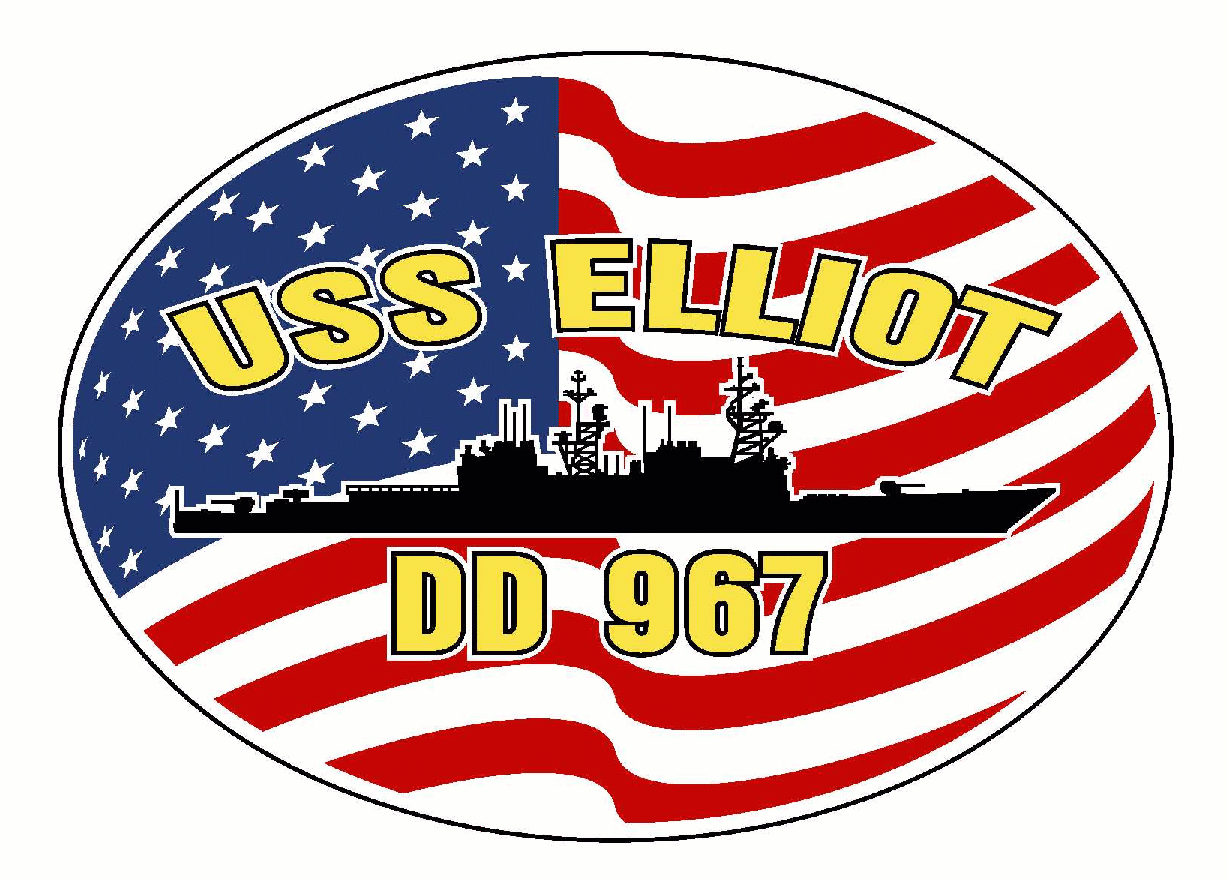 USS ELLIOT DD 967 Vinyl Decal Oval U.S. Flag Car Truck RV Military USN D003