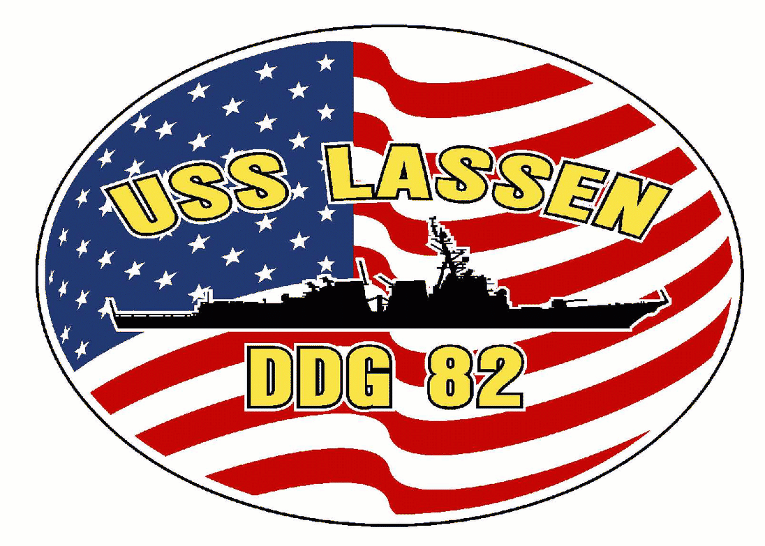 USS LASSEN DDG 82 Vinyl Decal Oval U.S. Flag Car Truck RV Military USN D003
