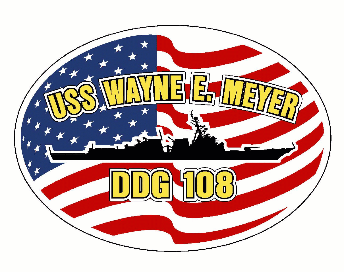 USS WAYNE E MEYER DDG 108 Vinyl Decal Oval U.S. Flag Car Truck RV Military USN D003