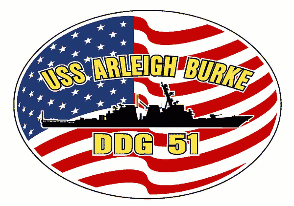 USS ARLEIGH BURKE DDG 51 Vinyl Decal Oval U.S. Flag Car Truck RV Military USN D003
