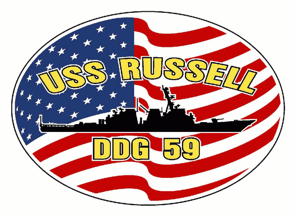 USS RUSSELL DDG 59 Vinyl Decal Oval U.S. Flag Car Truck RV Military USN D003