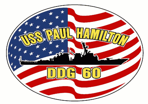 USS PAUL HAMILTON DDG 60 Vinyl Decal Oval U.S. Flag Car Truck RV Military USN D003