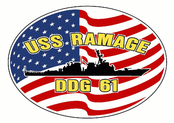 USS RAMAGE DDG 61 Vinyl Decal Oval U.S. Flag Car Truck RV Military USN D003