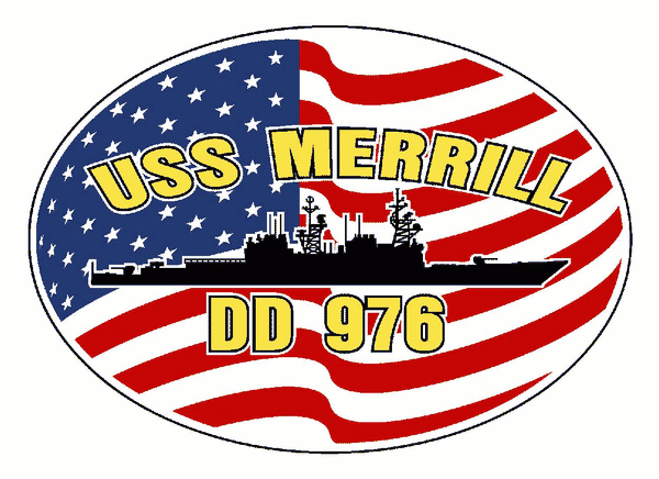 USS MERRILL DD 976 Vinyl Decal Oval U.S. Flag Car Truck RV Military USN D003