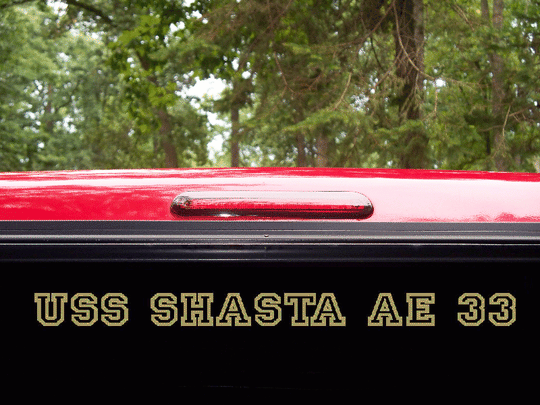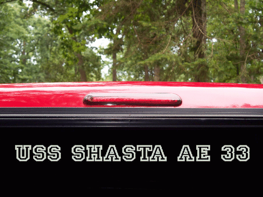 USS SHASTA AE 33 Vinyl Window Decal Single Color Car Truck RV Military USN D001