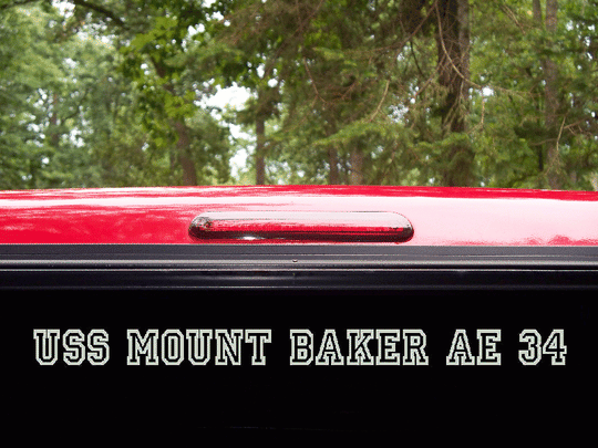 USS MOUNT BAKER AE 34 Vinyl Window Decal Single Color Car Truck RV Military USN D001