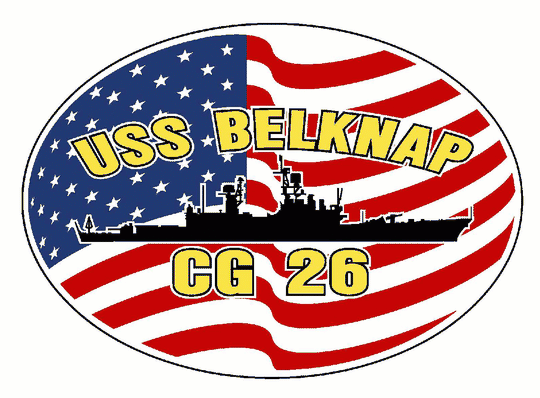 USS BELKNAP CG 26 Vinyl Decal Oval U.S. Flag Car Truck RV Military USN D003