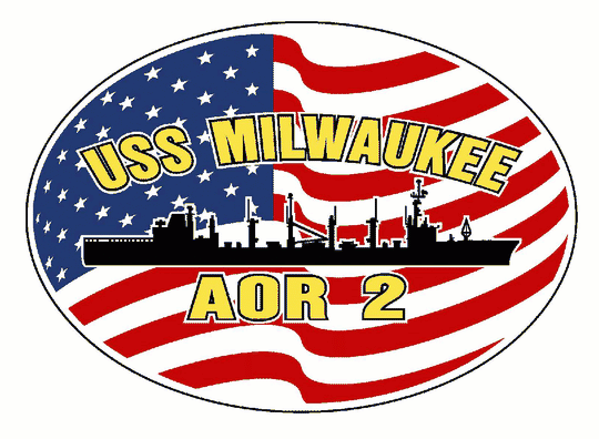 USS MILWAUKEE AOR 2 Vinyl Decal Oval U.S. Flag Car Truck RV Military USN D003