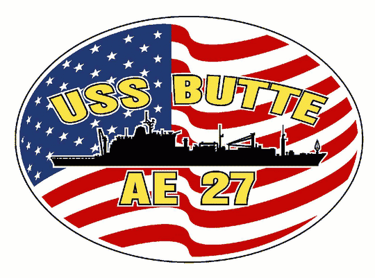 USS BUTTE AE 27 Vinyl Decal Oval U.S. Flag Car Truck RV Military USN D003