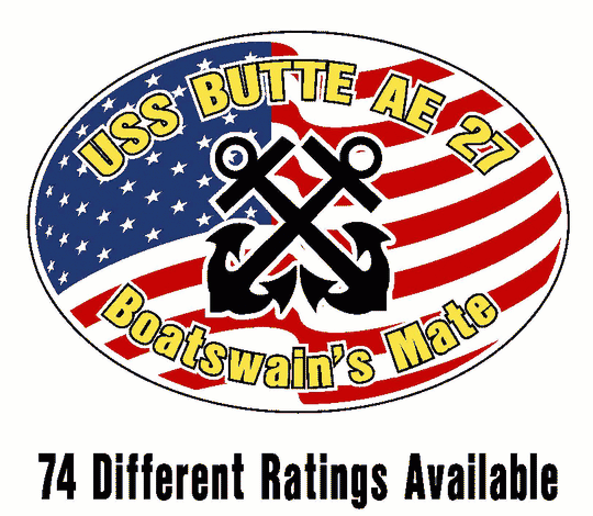 USS BUTTE AE 27 Oval Rating Decal U S Flag 11.75" x 8.3" Car Truck RV Military USN D007