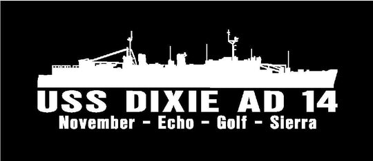 USS DIXIE AD 14 Silhouette Vinyl Decal 4" x 12" Radio Call Sign Car Truck RV Military USN D005