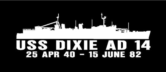 USS DIXIE AD 14 Silhouette Vinyl Decal 4" x 12" Dates of Service Car Truck RV Military USN D005