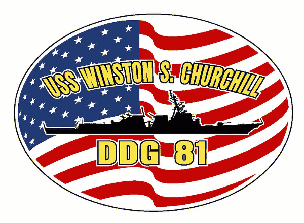 USS WINSTON S CHURCHILL DDG 81 Vinyl Decal Oval U.S. Flag Car Truck RV Military USN D003
