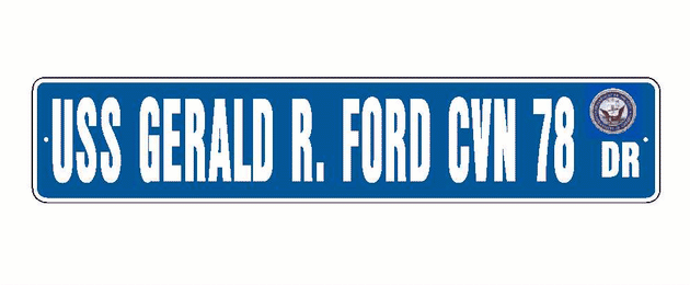 USS GERALD R FORD CVN 78 Aluminum Street Sign Blue / White 6" x 30" Military USN SS001