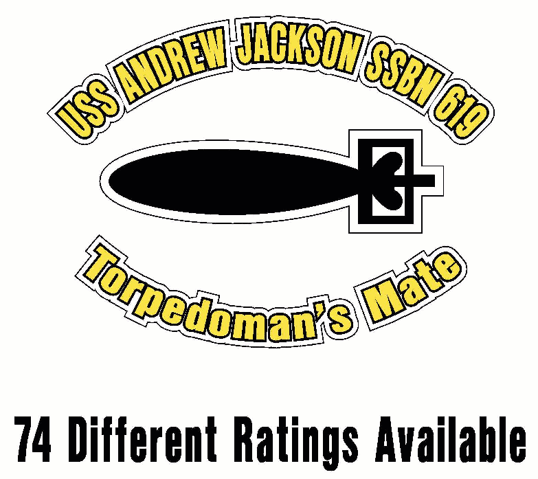 USS ANDREW JACKSON SSBN 619 Rating Decal 5" x 3.5" Car Truck RV Military USN D006