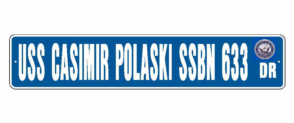 USS CASIMIR PULASKI SSBN 633 Aluminum Street Sign Blue / White 6" x 30" Military USN SS001