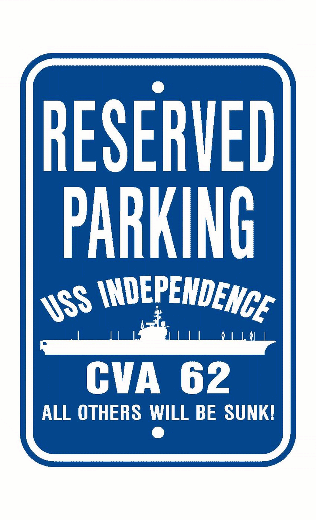 USS INDEPENDENCE CVA 62 Aluminum Parking Sign Blue / White 12" x 18" Military USN PS001