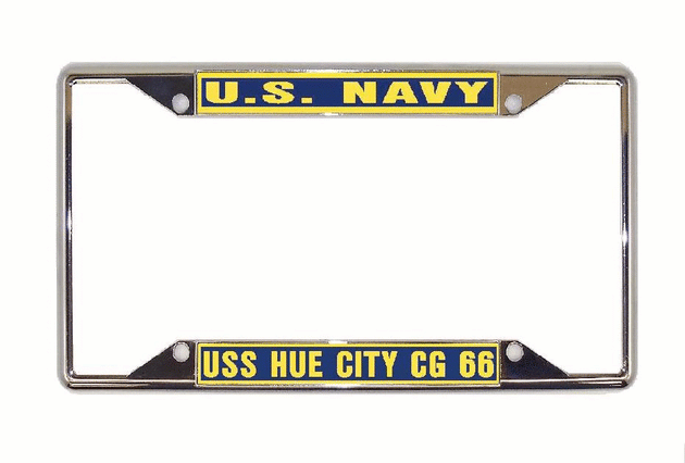 USS HUE CITY CG 66 License Plate Frame All-State Metal Military USN PF002