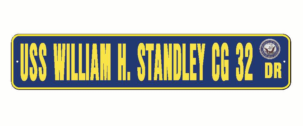 USS WILLIAM H STANDLEY CG 32 Aluminum Street Sign Navy Blue / Yellow 6" x 30" Military USN SS002