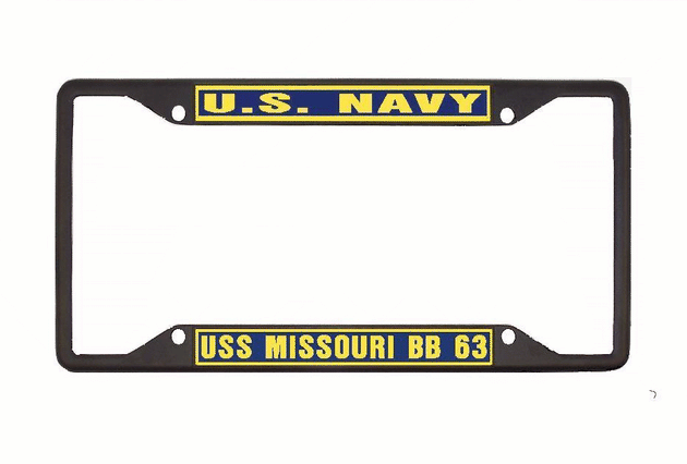 USS MISSOURI BB 63 License Plate Frame All-State Metal Military USN PF002